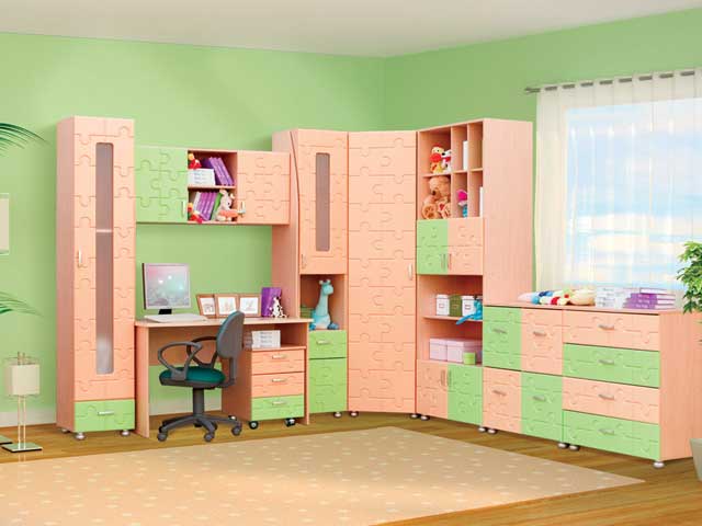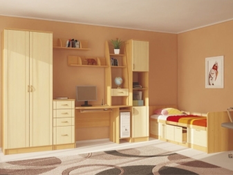 Pay much attention to the design of such a wall. If you select furniture for a child of 7-12 years old, you can give preference to more interesting design models. It can be pink, yellow, peach, beige walls for girls and blue, green, blue models for boys. Such furniture sets can have an interesting decor.