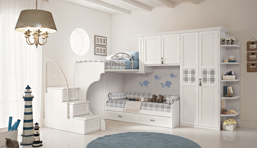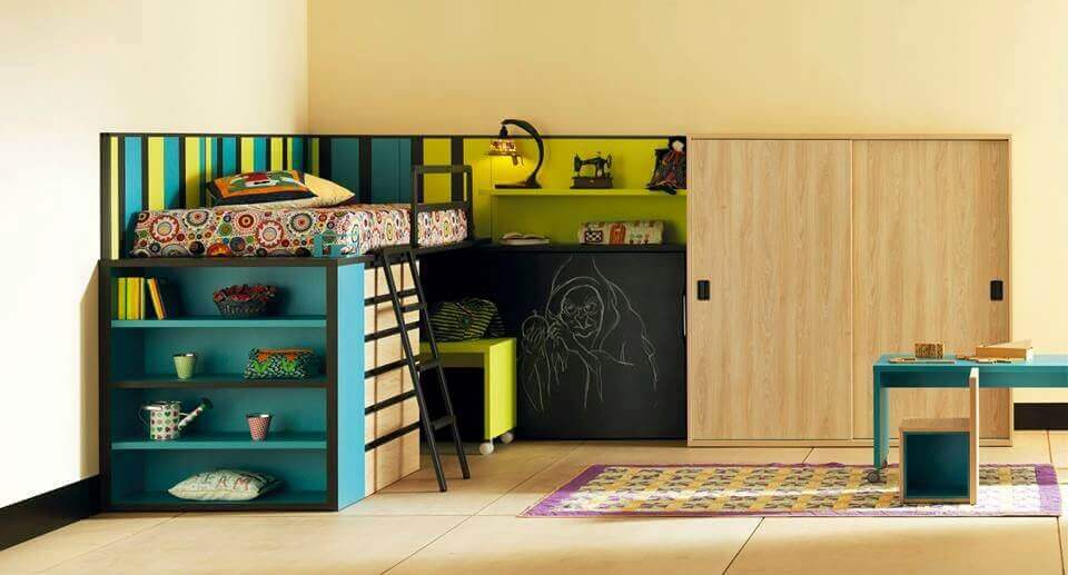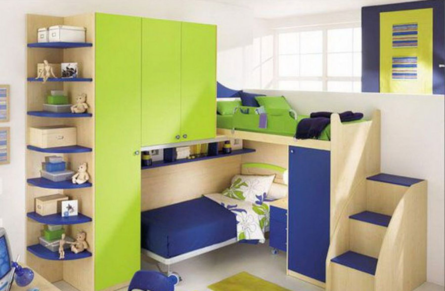 Usually in the closet even equipped with steps to climb up. This is a great solution for a small child. This design can also replace an extra bed for your baby's friends.