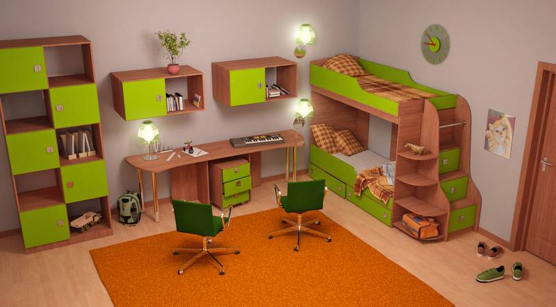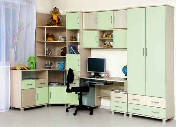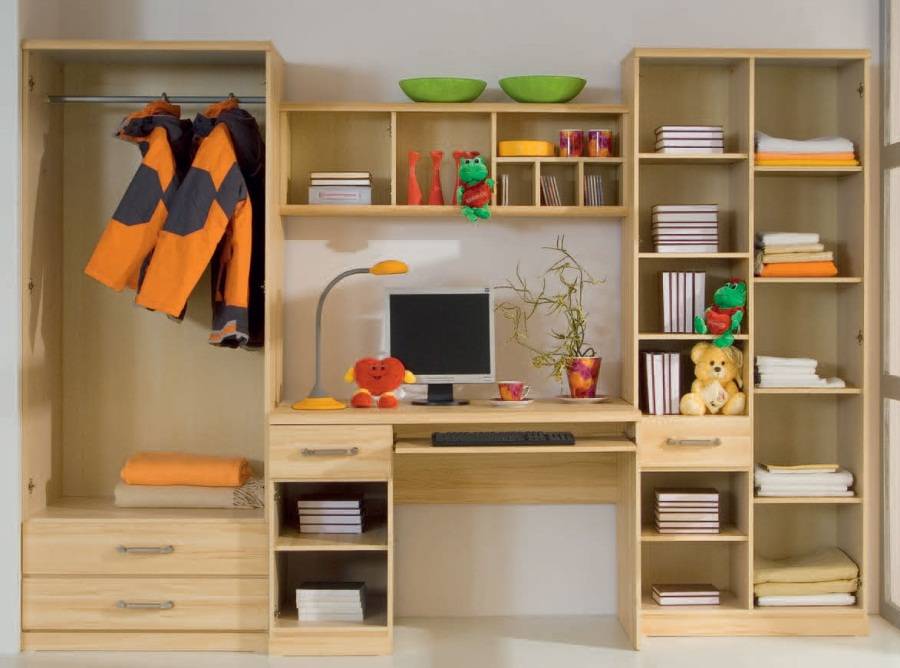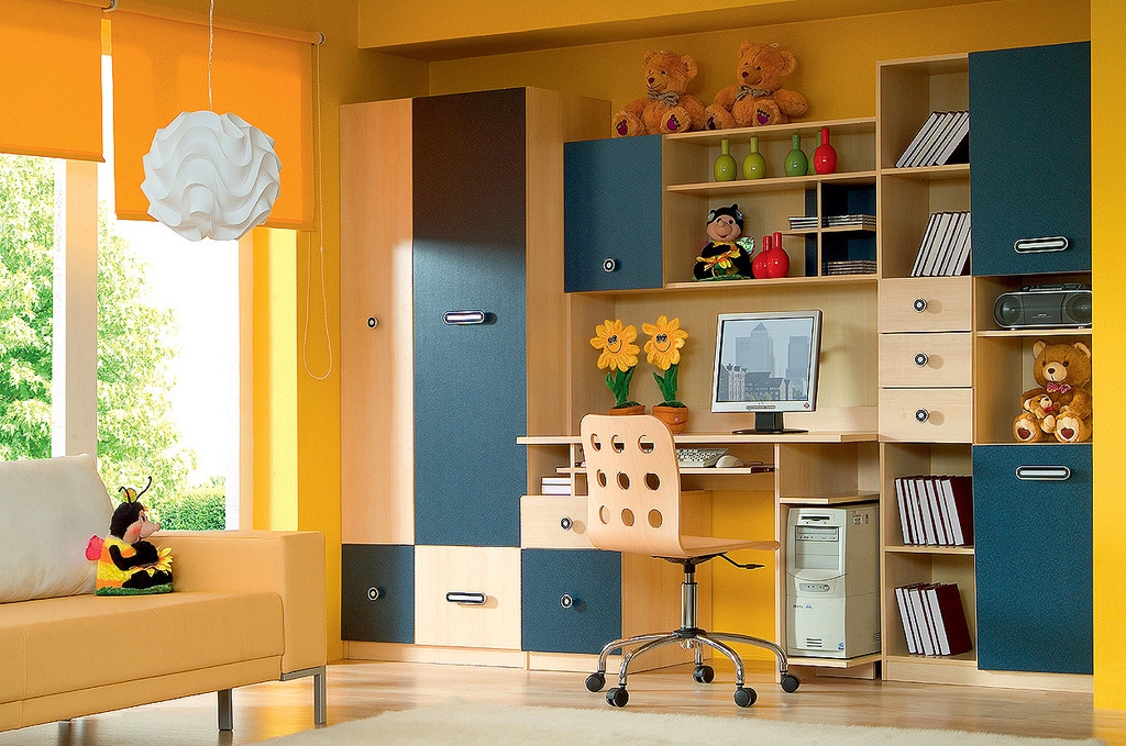 Children's room is a room that should be designed as functional as possible. Every parent is trying to correctly and comfortably arrange a workplace for their child-student. This is especially problematic if the room has a small area. In this case, children come to the aid of parents with a built-in desk and a wardrobe. Therefore, it is important to choose the right furniture for the nursery.