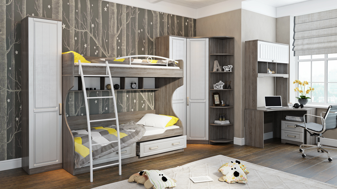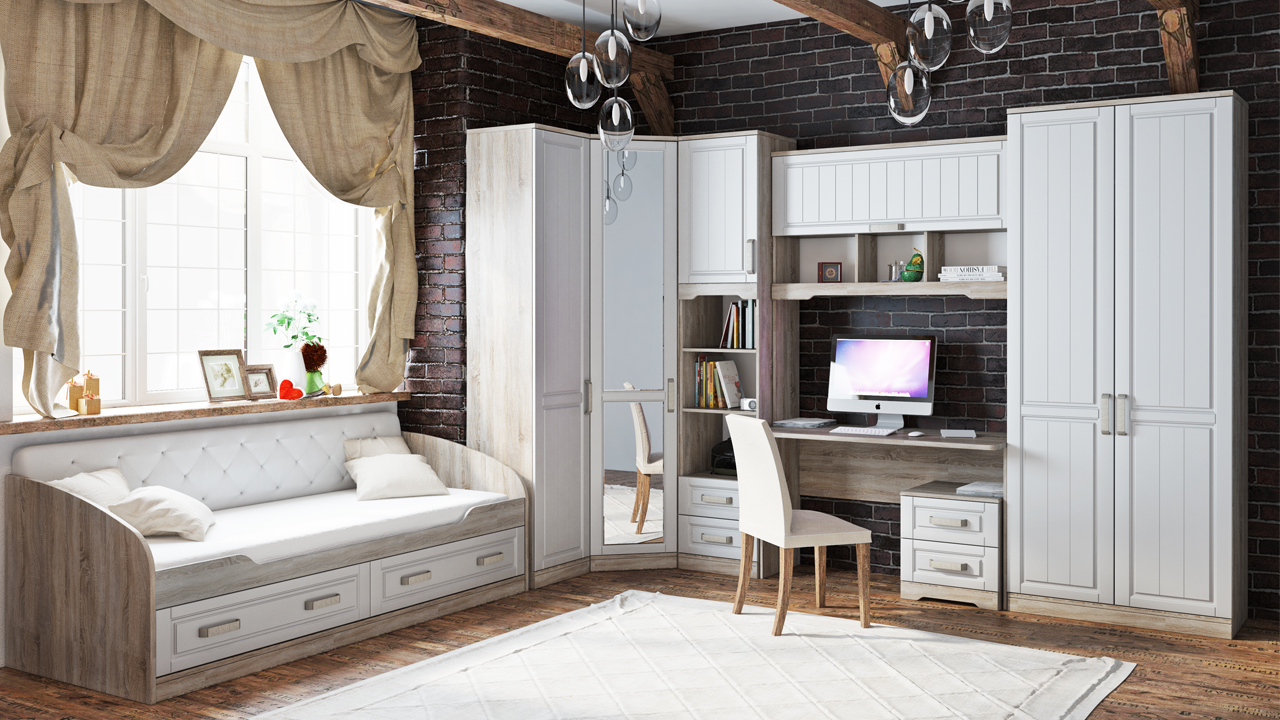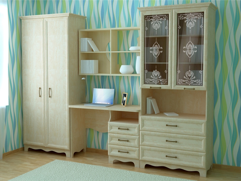 If you doubt the choice of a particular kit, you can pay attention to modular models. So, you can pick up a good and functional ensemble from a closet with a table and racks with drawers.