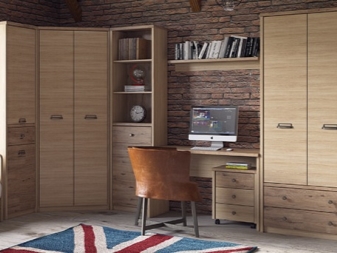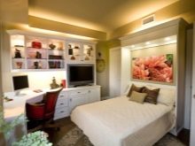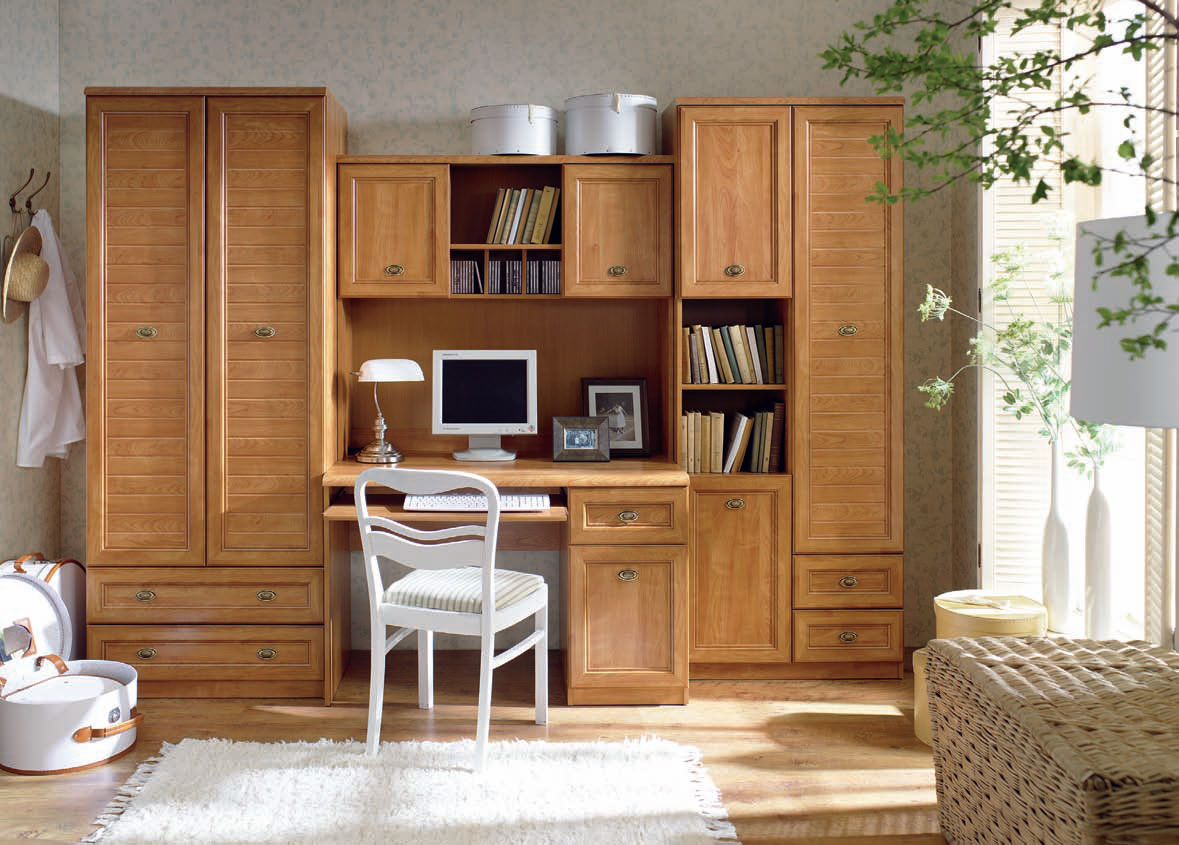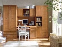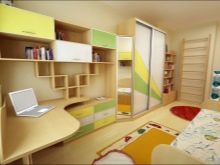 In this case, the workplace becomes part of the furniture wall, which is placed in the bedroom, living room or nursery and make an important part of the interior.