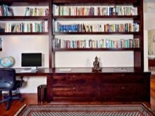 Almost every furniture wall has a module with a rack, which is used all differently, you can put books, CDs, souvenirs, toys on it. In this case, the computer desk can neatly fit into it.In fact, it will become part of the rack, the bottom shelf. And the neighboring shelves can be used for office equipment, folders, papers and other useful and necessary items.