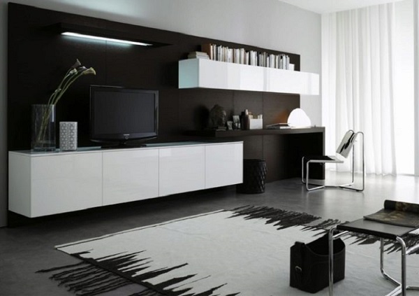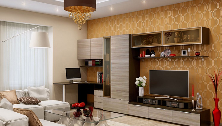 The corner wall is perfect in a small living room, where it is so necessary to free up as much free space as possible. The corner option is compact, but at the same time everything can fit in it, even a computer corner for work.