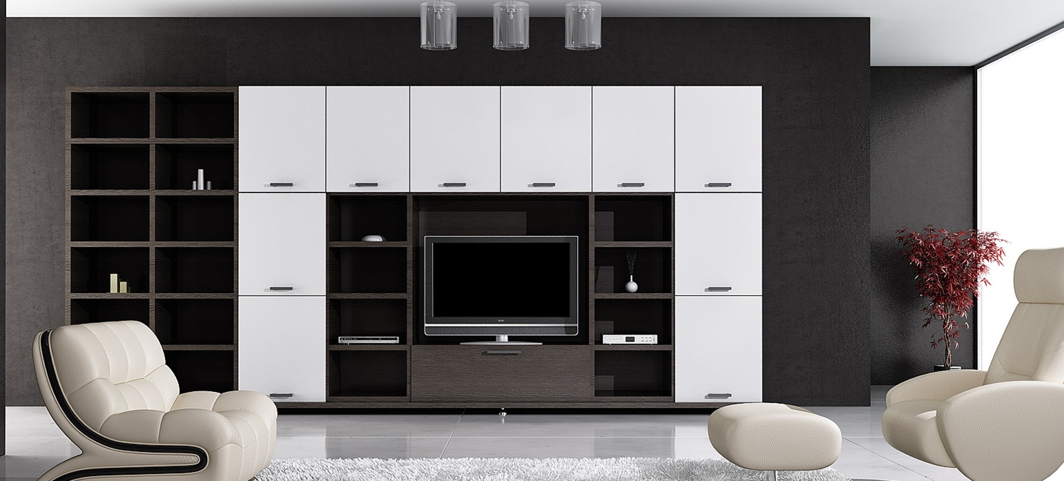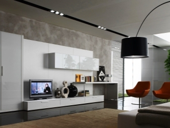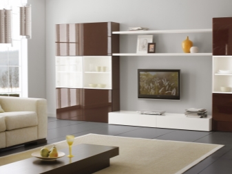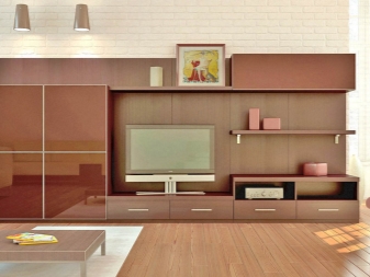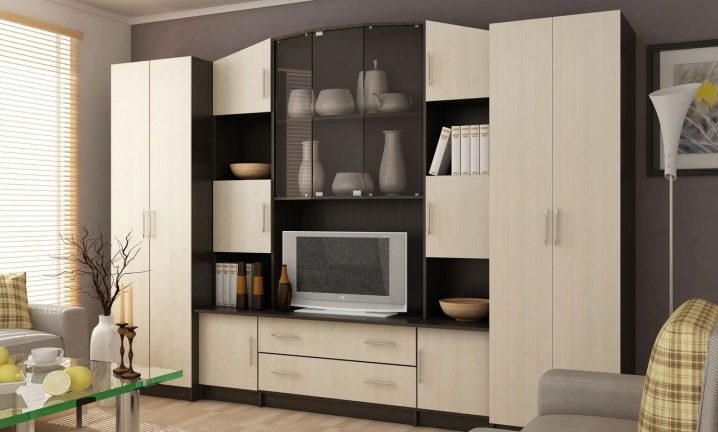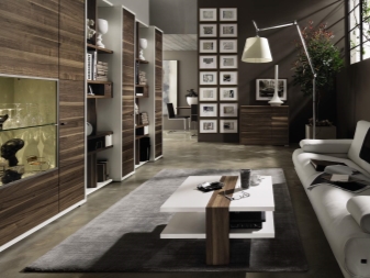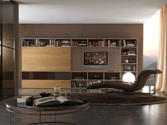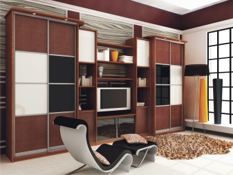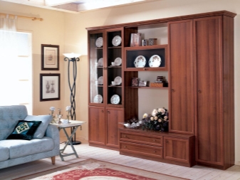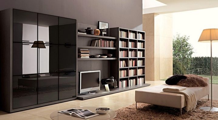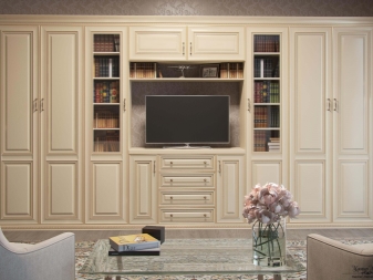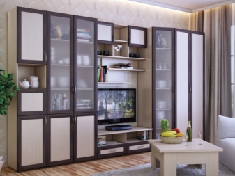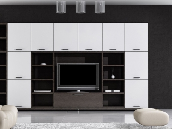 The walls are divided into two main types: case and modular. Cabinet furniture provides for the solidity of the whole structure: the cabinet itself is reliably built into the surrounding of other sections of the wall, and it is no longer possible to rearrange or replace one part by another. When choosing, it should be borne in mind that monolithic cabinet walls best fit in large rooms with high ceilings: only in this case does not create the impression of clutter and heaviness of furniture.