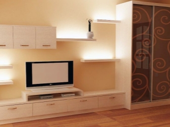 There are also a large number of lighting options for more modern LED lights in order to successfully highlight the central facade of the wall. It can be a favorite wardrobe, and a beautifully lit place for TV.