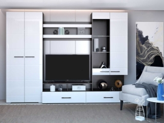 Minimalism implies a compactness, simplicity and a radical lack of decoration. For the wall in this style will be characterized by the use of materials with a glossy shiny shade and the complete absence of open shelves. The glossy facade will create the effect of expanding the space, and the closed doors will always be the personification of impeccability and accuracy. This style is certainly the most appropriate in small rooms,where the priority requirement for furniture is solely its functionality, but not the external aesthetic component.