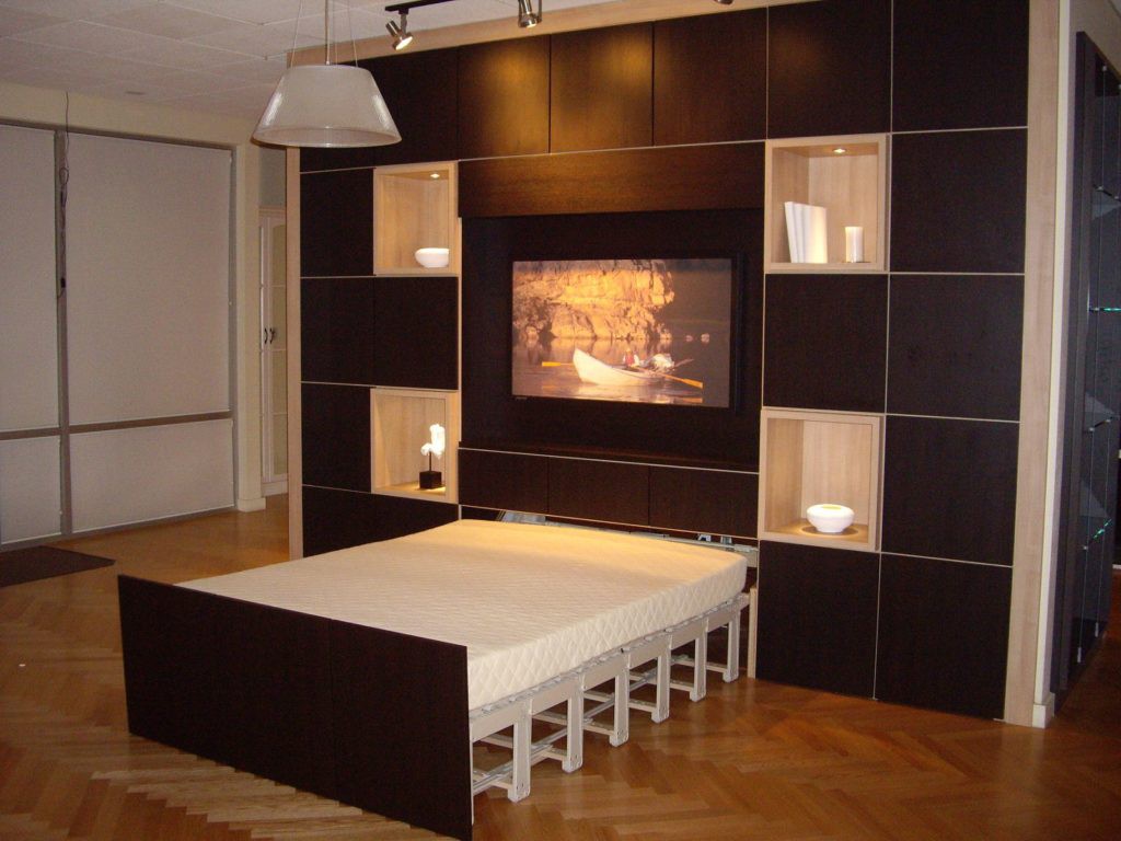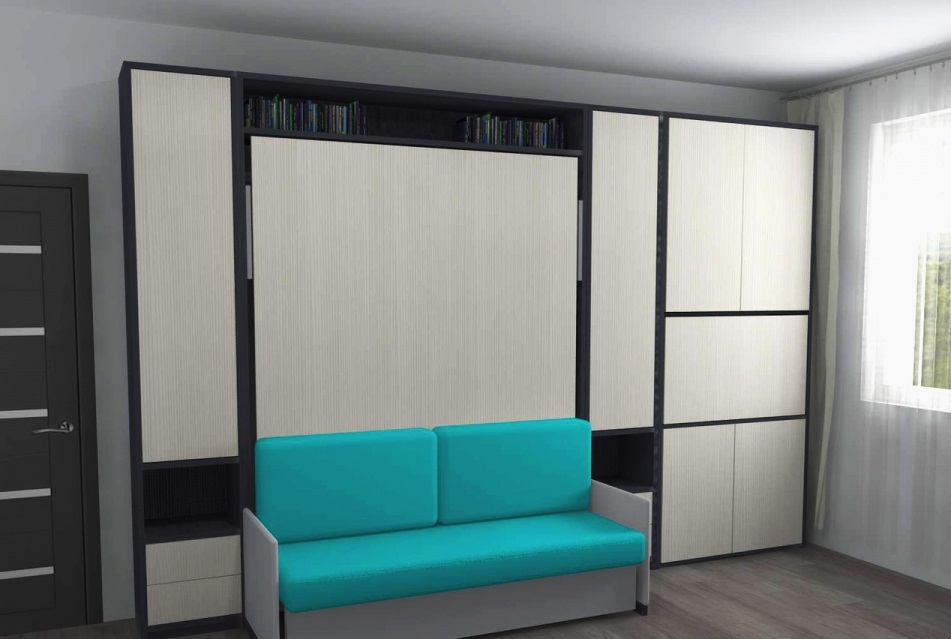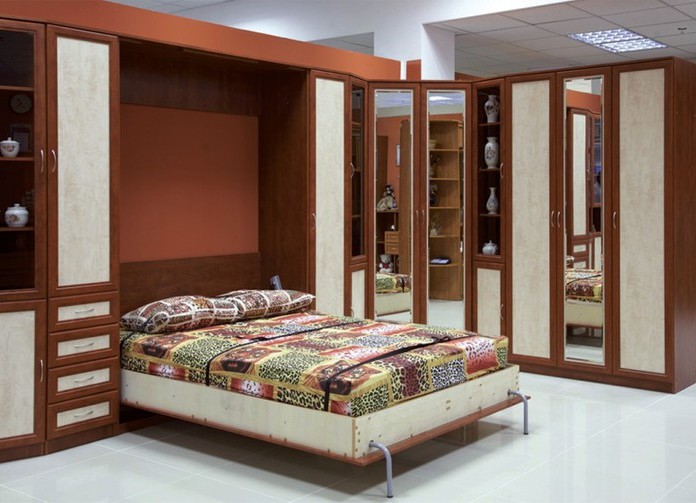 The bed can recline either vertically or horizontally, depending on the type of wall assembly. Of course, this option is most preferable if only one person lives in the apartment, but also for a family the transforming wall can become a convenient and optimal solution if you live in a small apartment or if you need to install an extra bed.