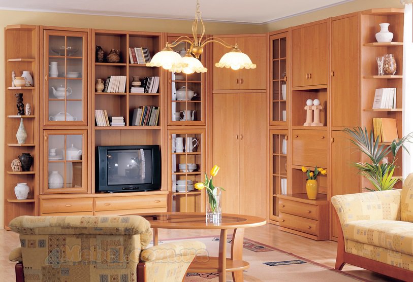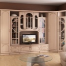 For a small room suitable L-shaped or mini-wall. Try to choose models including open shelves or glass doors. Such a performance will give the furniture lightness and grace.
