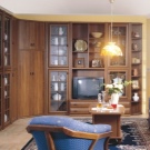 For those to whom monolithic structures seem too massive, manufacturers offer an alternative option. Furniture set, including free-standing wardrobes, cabinets and shelves, not in contact with the other elements, look more easily, but no less harmonious.