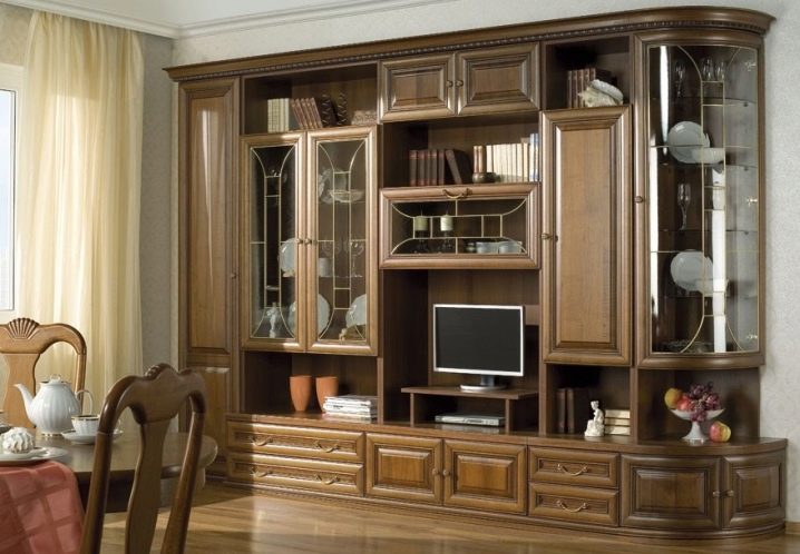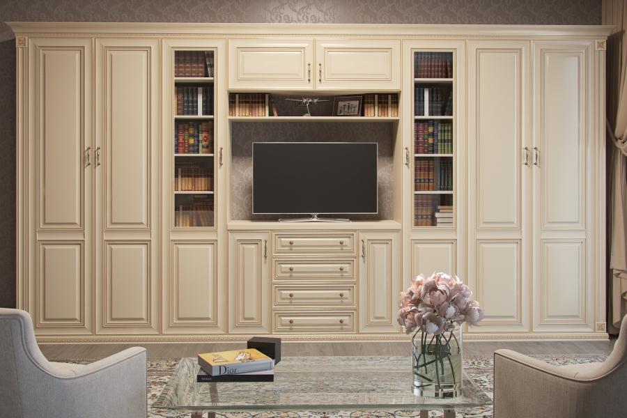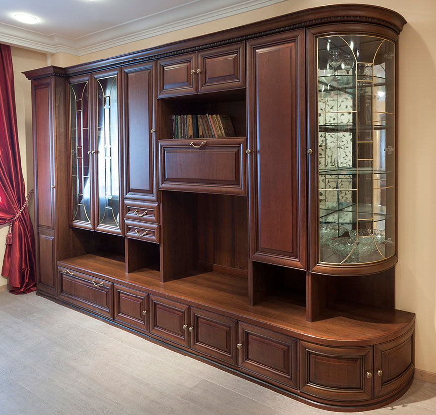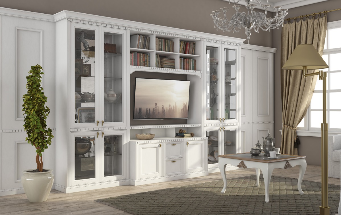 Unlike its predecessors, most modern walls do not look bulky. Large dimensions are smoothed out by elegant forms and design features. This especially applies to classic-style furniture.