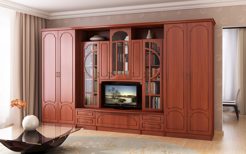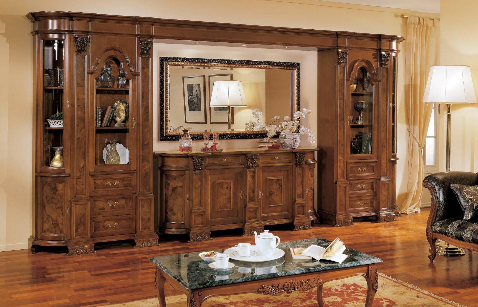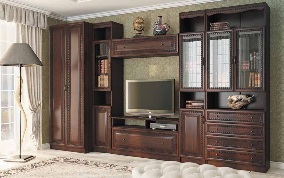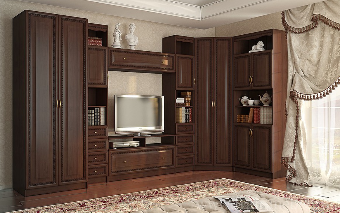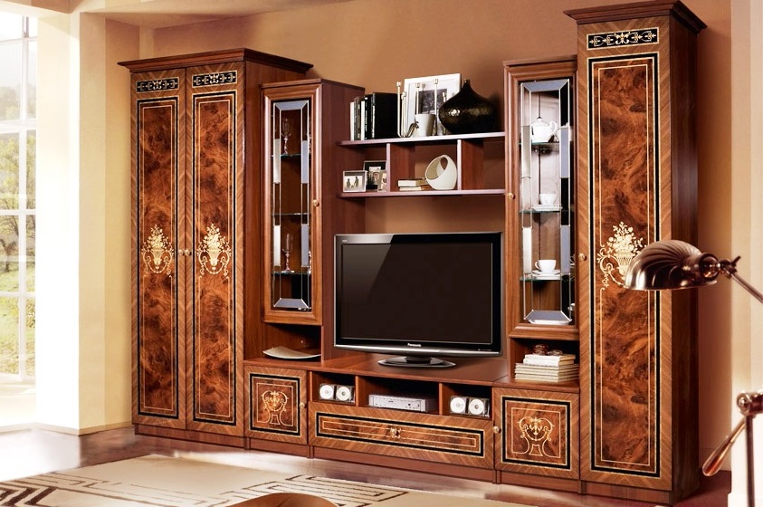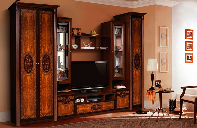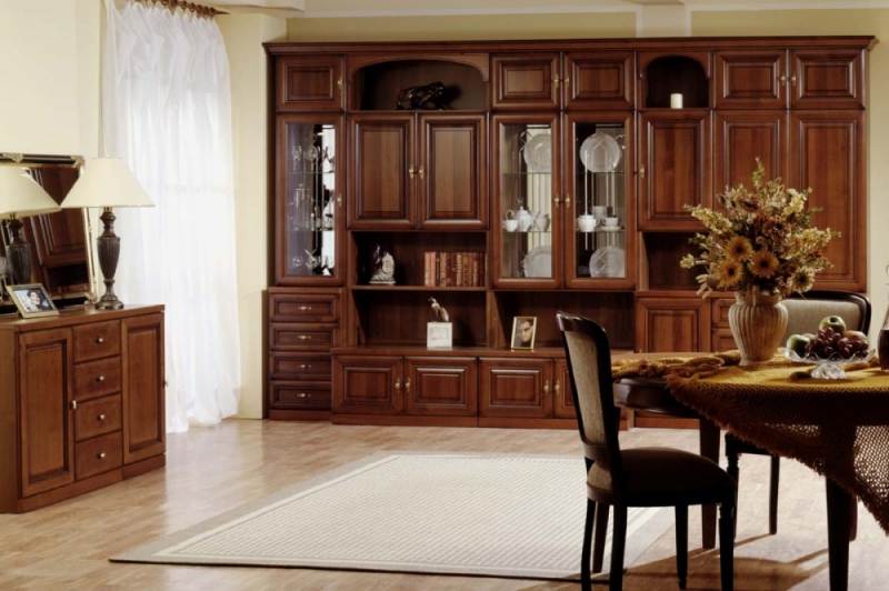 - Comfort Such furniture creates coziness in the house, gives aesthetic pleasure to the owners and guests. Thanks to the symmetry and calm tones of the classic walls easily fit into the interior of any color and do not bother.