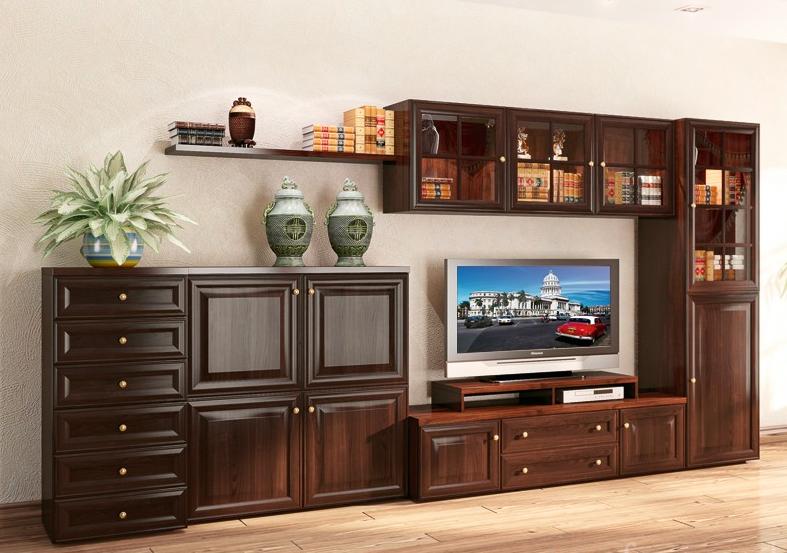 - Quality. Most of the walls in the classical style belong to the luxury class. This is an environmentally friendly, reliable materials, high-quality fittings and flawless finish. Such furniture pleases owners for many years, without losing the original appearance.