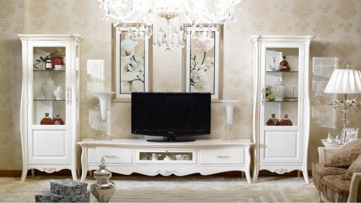 One of the most popular choices is furniture. white color. It visually expands the space, fills the room with light, refreshes the interior. These headsets seem particularly sophisticated. The light shade can be either cold snow white or warm milky.In these cases, beige patterns or gilding are often used as decorations.