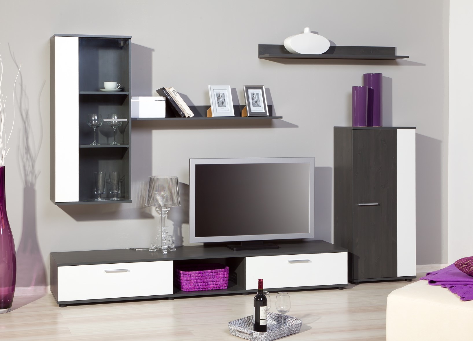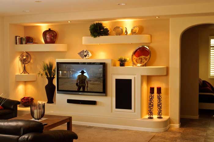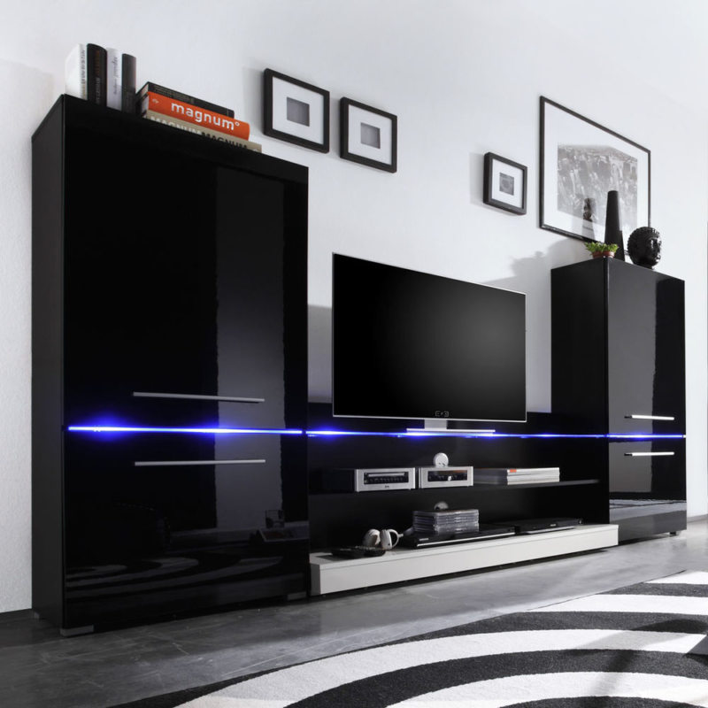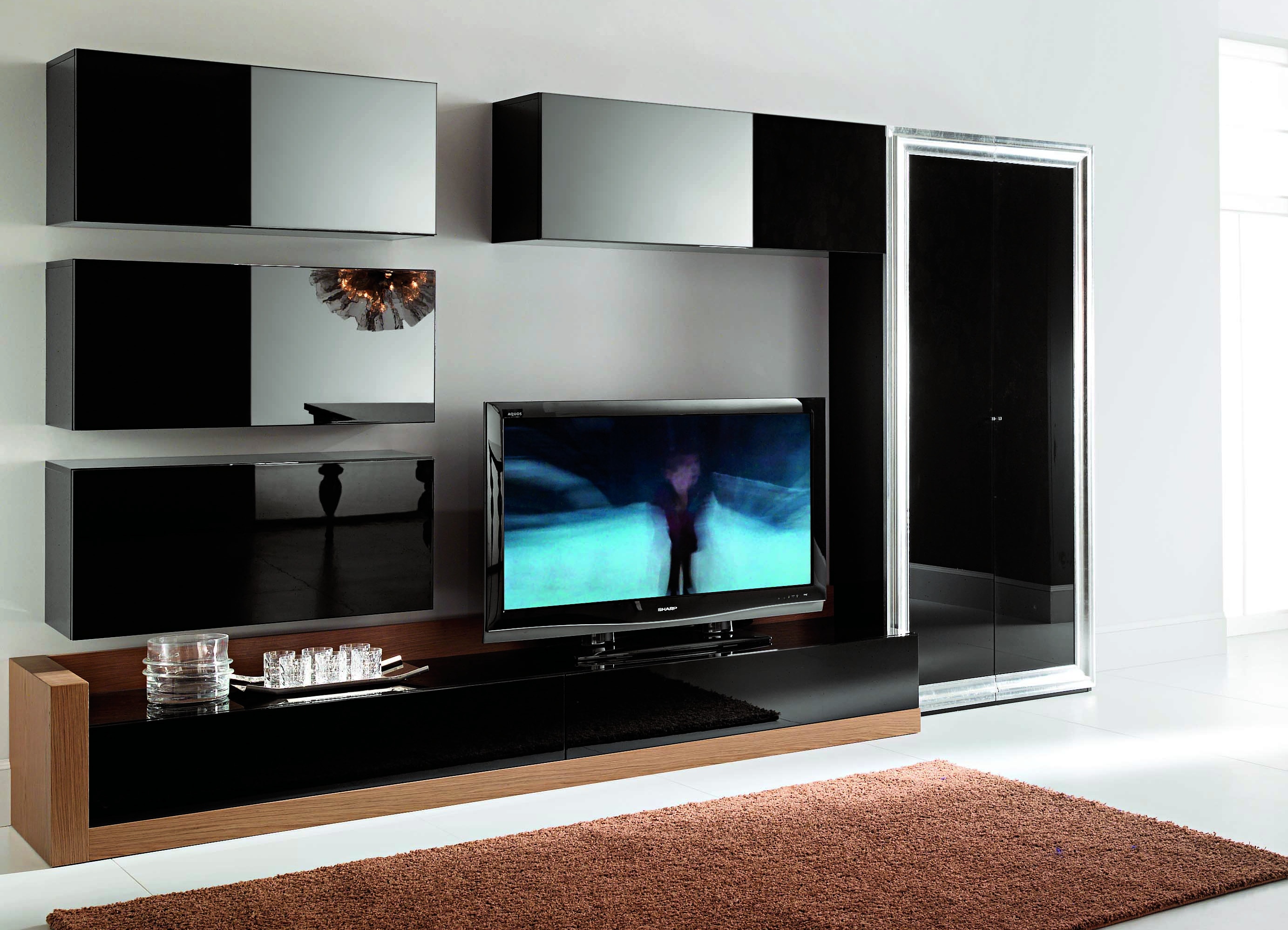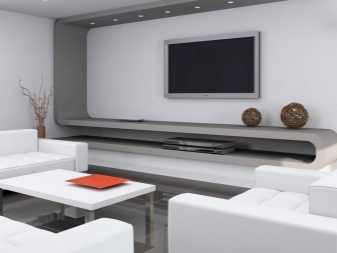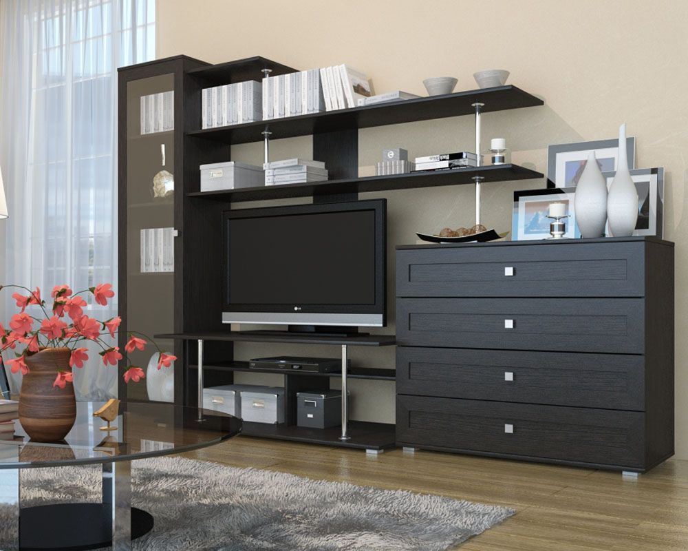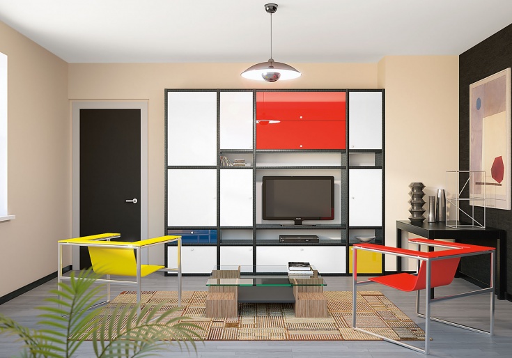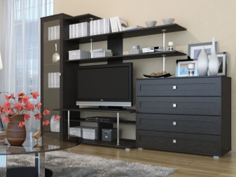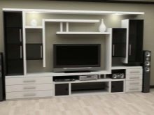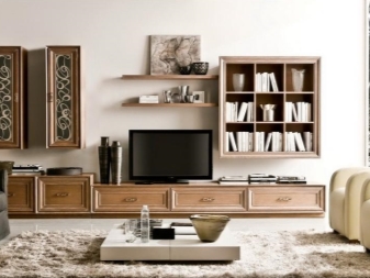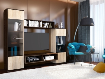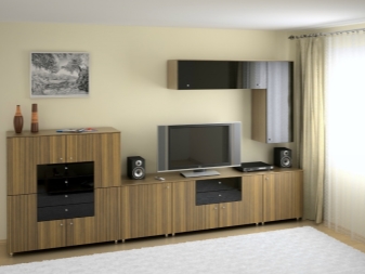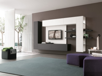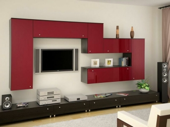 - Functionality. Such furniture will help you organize all the necessary elements in the house. You can place there various things, objects, put a TV, etc. Everything will depend on the style and possibilities of the wall.