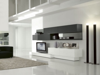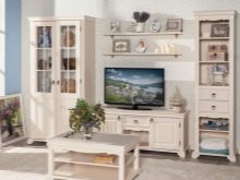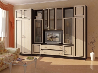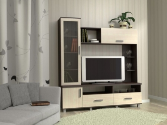 The design will depend on the style in which the furniture is created. So, for example, for the minimalism style, the roomy modules will be the way of which the composition is made up. As a basis, it is better to choose gray, beige or white. It is possible to use doors from glasses. This will add to the ease of construction.