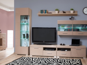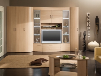 Match your model to the size of your room. Do not buy too large walls in compact living rooms. They will not look attractive there. It is better to purchase, for example, an angular compact version. It will help save space, as well as streamline all the necessary things.