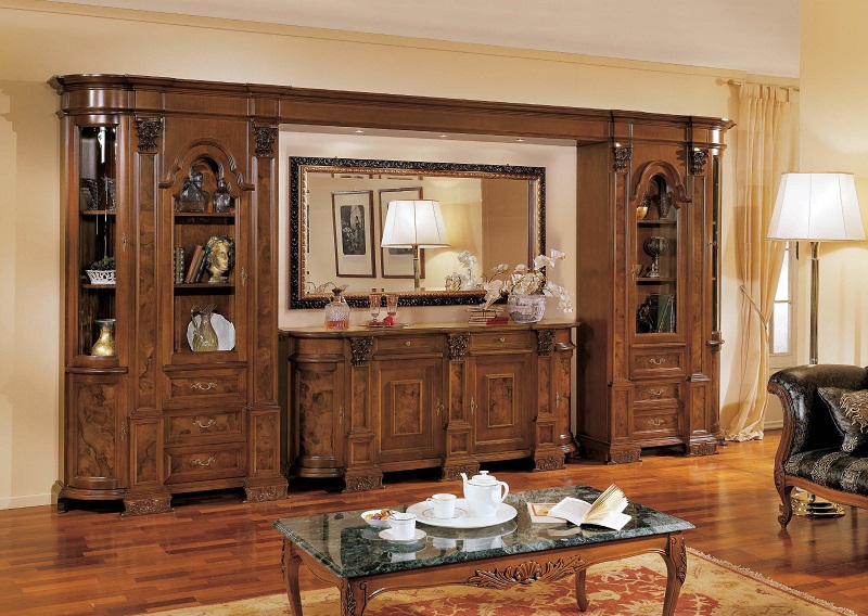In any apartment will be relevant classic. As a decor, wood carving is used here. These can be leaves, flowers, geometric shapes, patterns, squares, etc.In the working room you can put the product in the style of minimalism. The main thing is to have the necessary racks for books and documents. So it will be convenient for you to work.