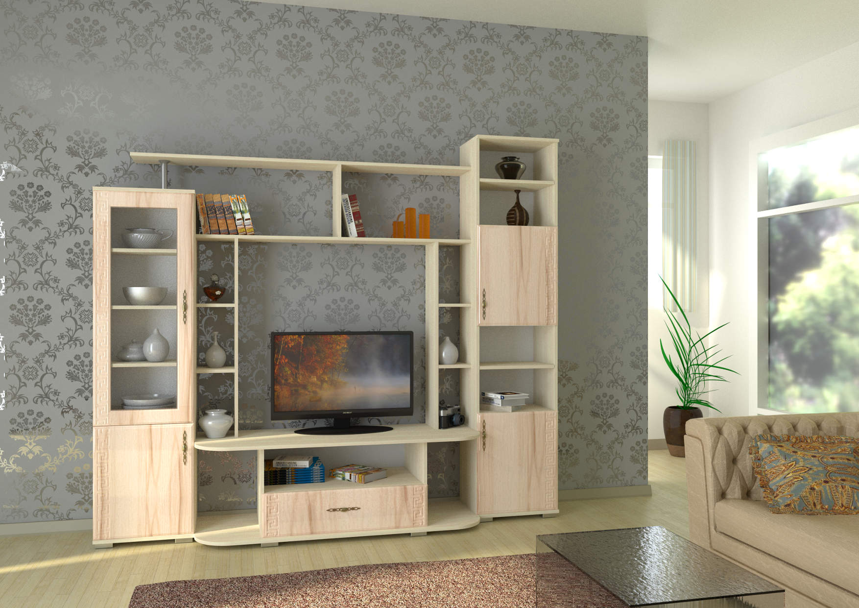 Choosing a suitable wall for your living room, you should focus not only on the style of the room, but also on the color shades. They should also merge into a single concept. The most popular option is light furniture. Such shades will favorably emphasize your interior, give a room a rich and stylish look.Also, light colors allow you to visually expand the space, give the room more light and positive.