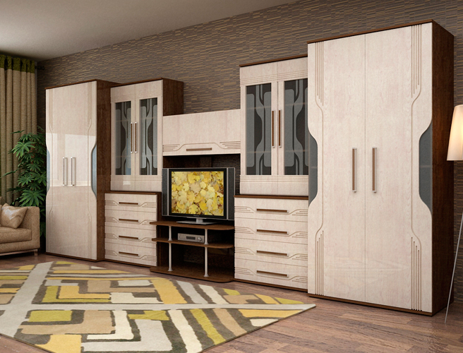 Many buyers, choosing a stylish wall, are guided by the fashionable decor that the furniture is decorated with. Everyone wants his room to be original, give joy, comfort and good mood to all home. Various design variations will allow you to embody your wildest ideas. You can make a wall to order.Experienced specialists will take into account all your preferences. At the same time, such work will be expensive. However, you can buy in the store stylish and attractive options.