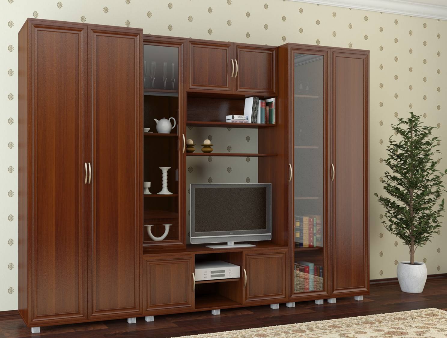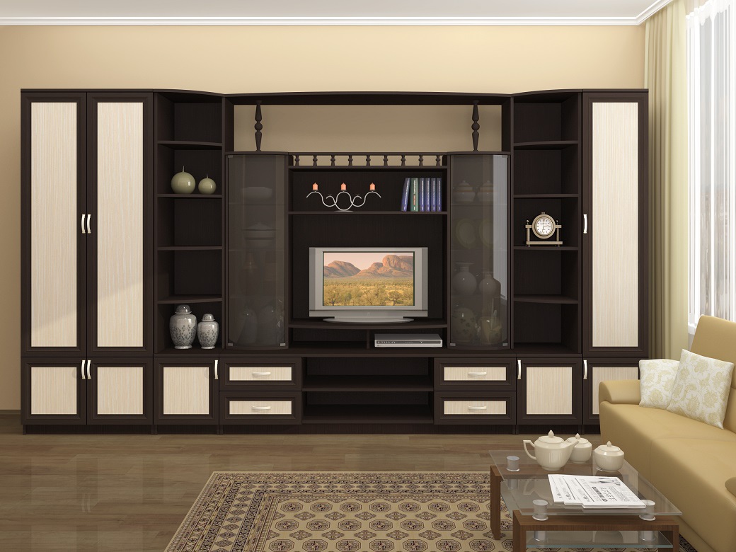 Select the product based on the style of your room. Only in this way can you create harmony in the space of the hall. It is also worth paying for the internal content of the furniture. If you need options with numerous shelves, cabinets, other offices, then you need to purchase similar products, not sparing money on them.