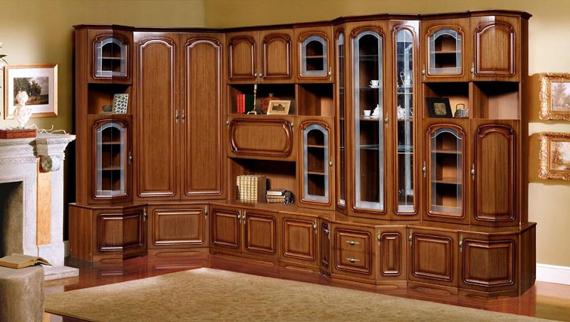 The undoubted leader in high quality, strength and durability are the walls from solid wood. It is considered the most environmentally friendly and safe, does not cause allergies. This natural material is often chosen by the most picky buyers. Variants of wood will serve you a long time. At the same time they look elegant, stylish and rich.