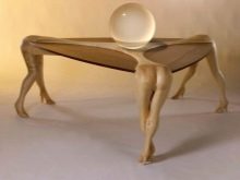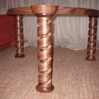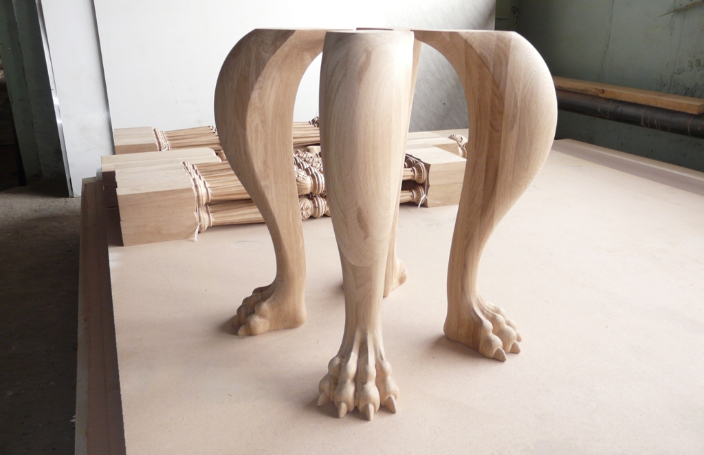 - The most expensive, but at the same time, the most unusual are the legs, made by the method of carving.Initially, this type of wood processing was very time consuming and difficult manual work, but modern technology has greatly facilitated this process. Special multi-axis machines create true works of art. However, the manual processing of furniture legs is much more valued, because it requires high skill and professionalism of the cutter.