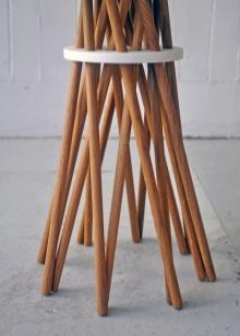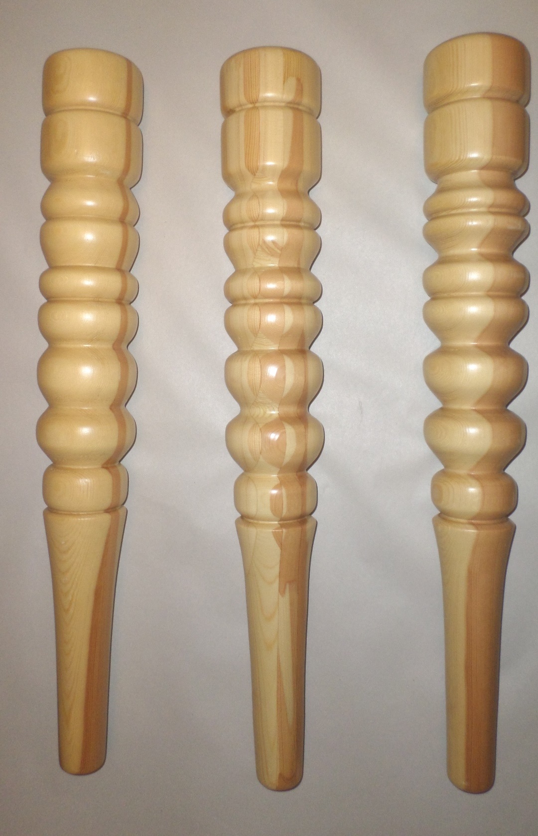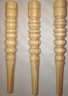 - Workpieces machined on a lathe are considered to be the cheapest, since a small amount of time and effort is required to make them.The legs are formed during the rotation of the bar fixed on the machine. In this way, the processing of an array of wooden legs can be given a variety of geometric shapes. So, they can take the form of a ball, cylinder, while maintaining harmony in combination with the other elements of the product. Very interesting and unusually look legs that have a conical shape. These elements of the interior will have a low price, while looking very nice and elegant.