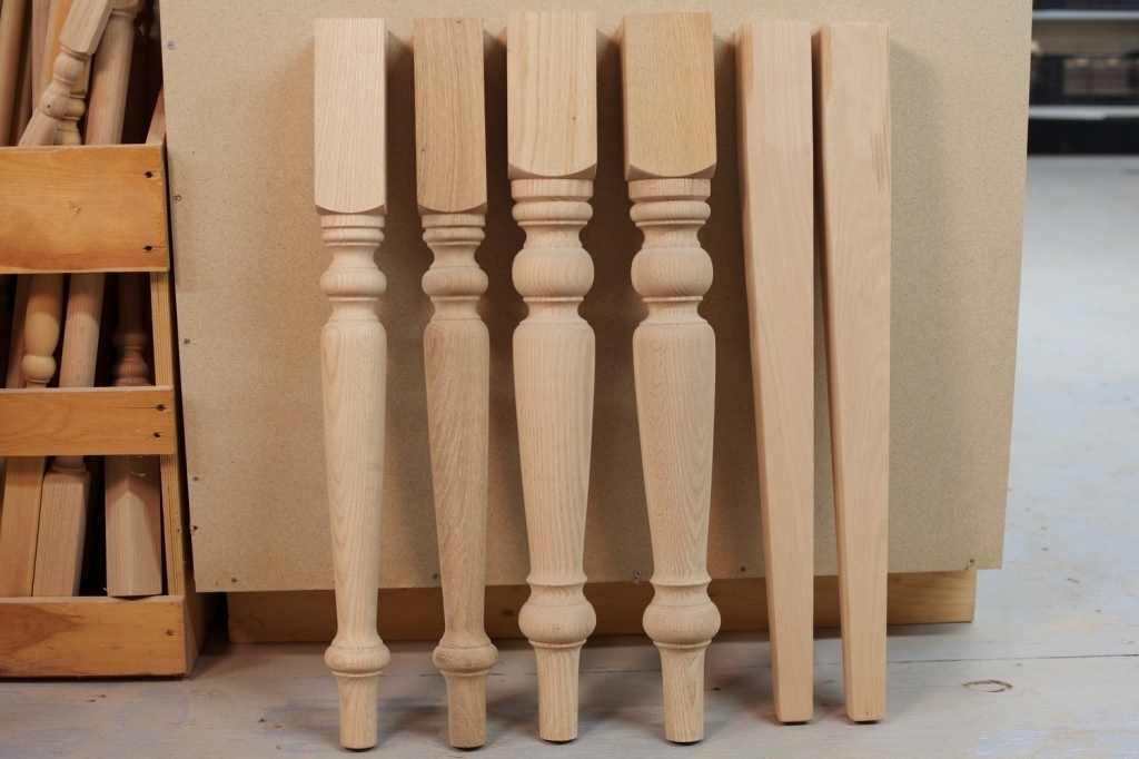 Wooden table legs can be processed in several ways: by milling, turning or carving: