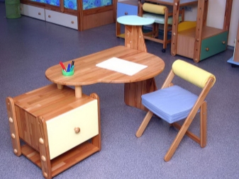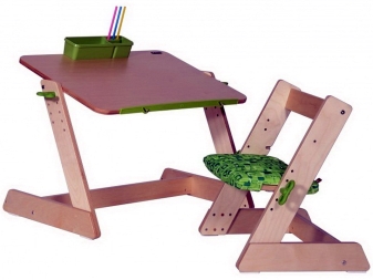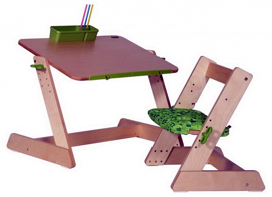 Such a subspecies of transforming tables, in which there is the possibility of adjusting the height of the table and chair, is very popular. This type has several advantages: