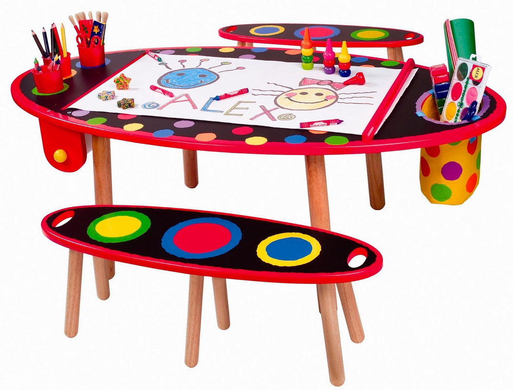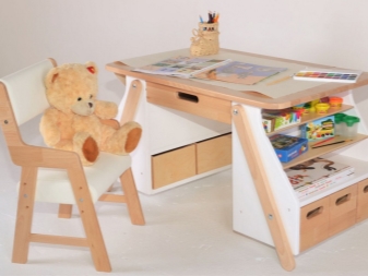 Young children love to be creative. They cut, glue, sew, etc. The table for creative works is designed specifically for the kids to be comfortable doing it. It is equipped with special attributes, for example, an easel or grooves for cans of paint. At cost, this model of the table is quite affordable for many parents. There is only one drawback to such products - they are not height adjustable. Therefore, when a child grows up, you need to buy a new one.