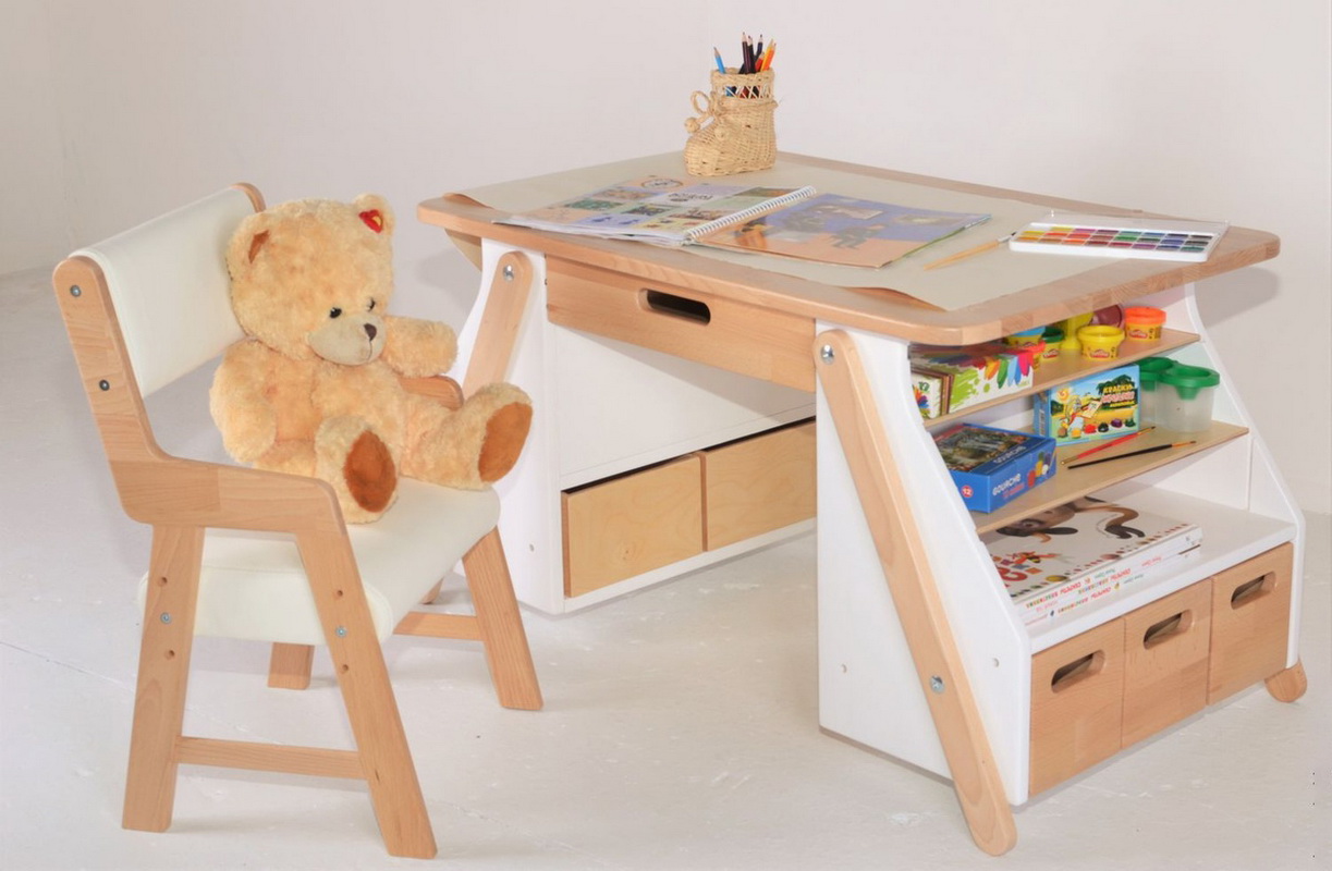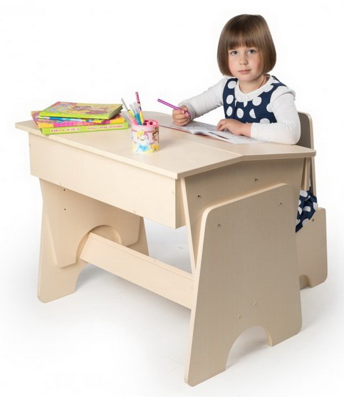 In this case, pay attention to compact desk for the student. Such models are very popular today. But if the family lives in a one-room apartment or the nursery is too small, then you have to think about how to save space. A small children's table made of wood will help solve this problem.