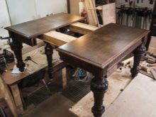 Seal cracks and chips. To do this, you need a putty for wood or polyester profile. After puttying, re-grinding. At this stage, you can stop and do not carry out further work (except varnishing), cover the tree with wood stain, which will give the table a new color and look. For example, turn an oak table into an imitation of wenge or other wood species. But when the damage is significant the next stage is necessary.