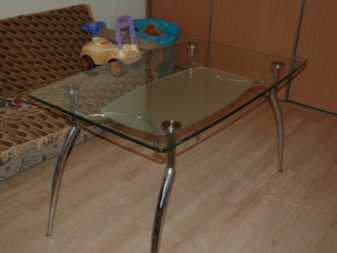 The legs are loosened, chips and scratches appear on the glass. If there are scratches on the tabletop in which the nail can fit, then it is better to give the table to a special workshop, dispose of or replace the glass with a new one.
