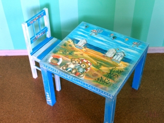 For the children's table you need to use only high-quality finishing materials. And you can decorate it with a variety of animals, cartoon characters.