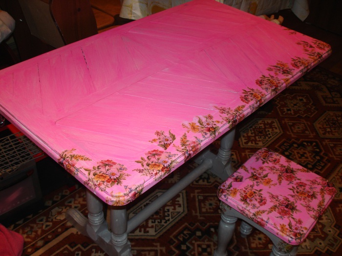 There are many ways to improve, decorate and restore the old table. But before proceeding to work, it is necessary to prepare the future “canvas” - remove the old coating, sand it, tighten all nuts and screws (so that it does not loosen and dangle), putty, coat it with paint (if necessary) or varnish. Then proceed to the decoration. Conventionally, all methods of decorating a wooden table can be divided into two groups: