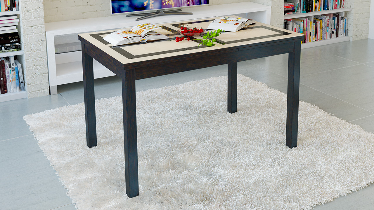The sliding table can be decorated with drawings that can appear only when the table top is disassembled as much as possible. And of course, if this kind of table is used as a dinner table, you can use kitchen themes in its decor - images of food, fruits and vegetables, and tableware. The kitchen table can be decorated with tiles and mosaics. This will be a very practical solution.