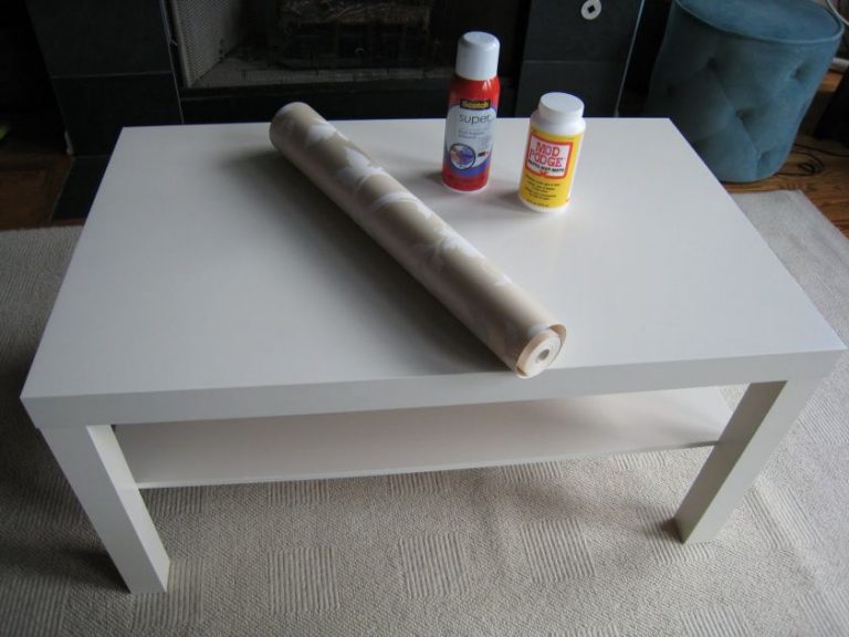 To paste a table from the seamy side with a decorative film. When pasting the table with film, do not allow bubbles to form. It is better to glue the film little by little, gradually moving the substrate. If the bubbles did appear, then you can pierce them with a needle and smooth them;