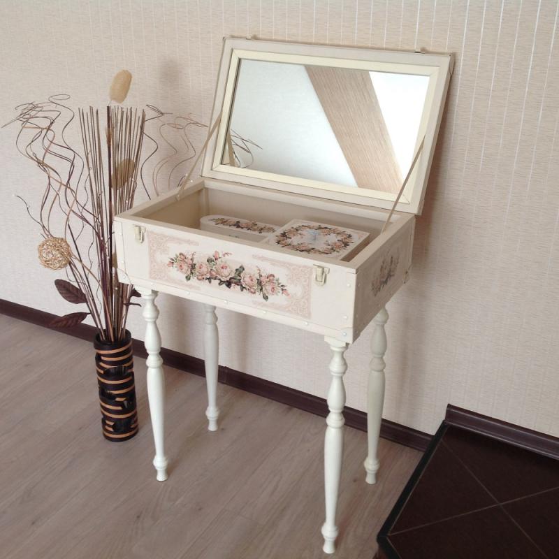 Restoration and subsequent decoration of the table is a very long process. But the result is worth it, because you can get an exclusive designer thing, which is already associated memories. Furniture decor can be completely copyrighted and at the same time very organically fit into the concept of using the object and the room.