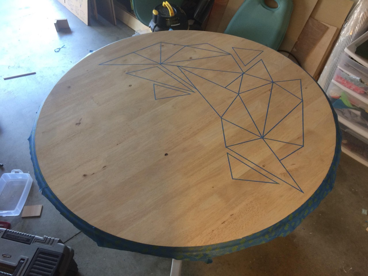 To give a graphic pattern (lines, zigzags, diamonds, squares) you can use scotch tape.Mark the future picture with adhesive tape, apply the first color with paint. If necessary, repeat the procedure in other colors. Finished table top varnished.
