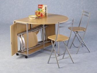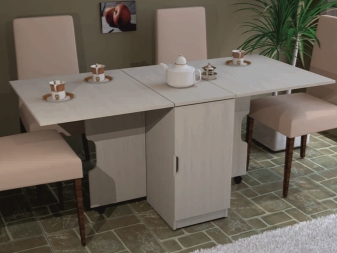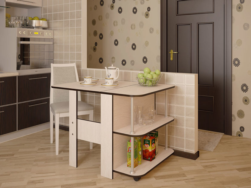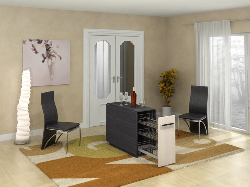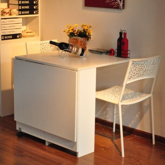 - Compactness. If necessary, a small table when folded can be easily hidden on a balcony, loggia, pantry or any other similar room. You can also put it under the wall or in the corner of the room, where it will not take up much space, and catch the eye.