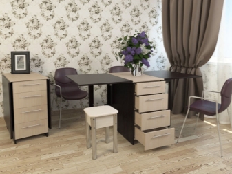 If the table is planned to be placed in the kitchen, you should make a choice in favor of products resistant to high temperatures and pollution. In order to store various kitchen utensils, it is recommended to purchase a pedestal table with spacious drawers.