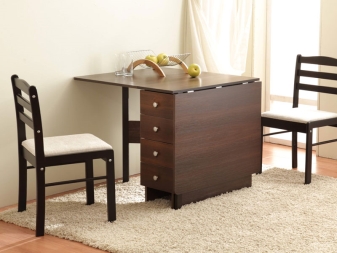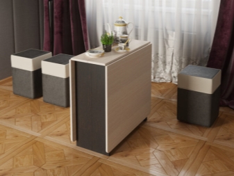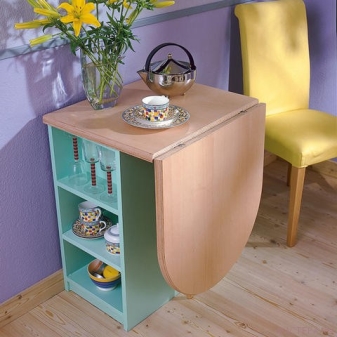 Tables of this type can be easily placed in small apartments, especially if you choose a small option. Due to a number of advantages, this furniture satisfies the demands of modern buyers. It should be noted that certain models can be transformed or decorated at will with their own hands.