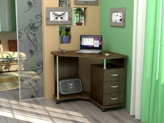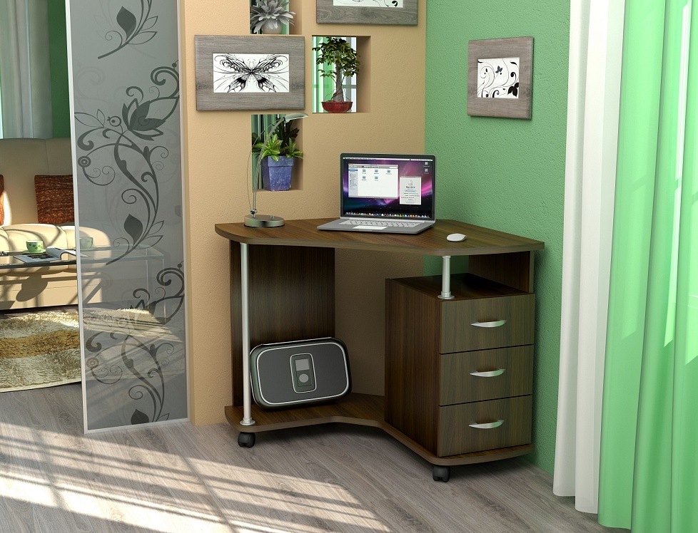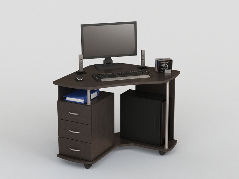 - KS-2025 - a miniature corner table on rollers, measuring 87x60x77 centimeters and equipped with drawers and a large cabinet. Made of laminated MDF boards with a wide choice of textures and colors. The cost of the product is 5 thousand 200 rubles;