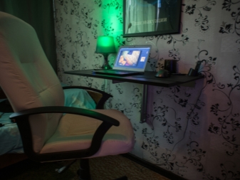 The bedside version of the folding table also applies to console structures and is convenient in that, when you finish work, you do not need to move and disassemble it, but rather just slam it against the wall.