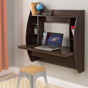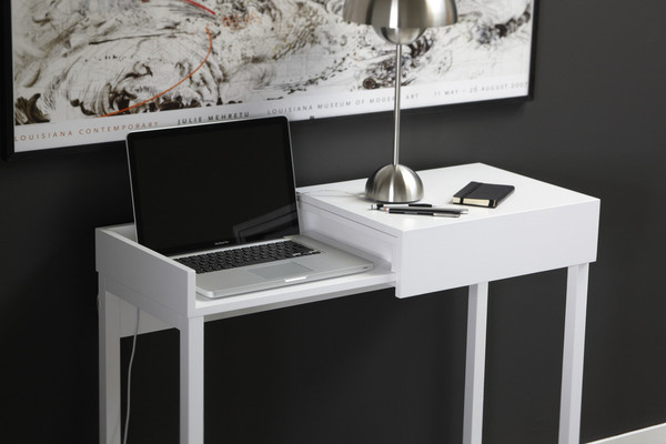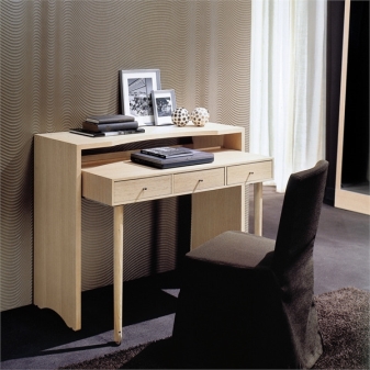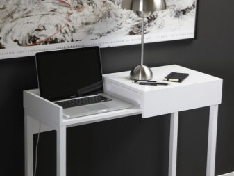 Console models are quite functional structures that are mounted to the wall and can be equipped with a large number of superstructures and side shelves.This allows you to freely place the associated office equipment, books and stationery. The downside of the console tables is the need to make holes in the walls and lack of mobility. Such models will look stylish in modern and traditional interiors.