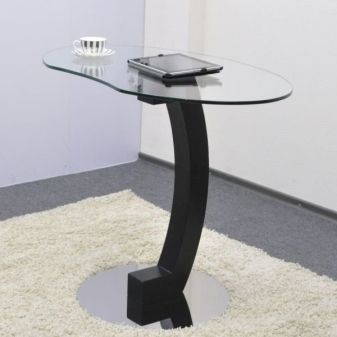 Glass for the production of tables used hardened and extremely durable.The edges of the glass surfaces are subjected to special grinding, thereby eliminating the likelihood of chipping and injury to the user. Such models are suitable for all modern interiors, they look very impressive and visually increase the space. The disadvantage of glass tables is the appearance of scratches during operation, as well as the visibility of stains and fingerprints.