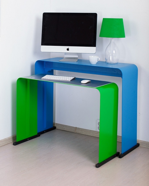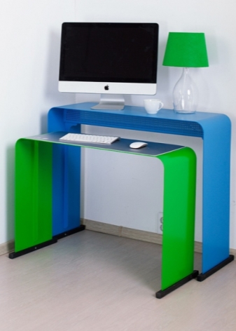 Plastic tables usually have a foldable design.small size and light weight. Equipped with air vents and stand for glass. They are easy to maintain, easy to transport and have a low cost. Due to the wide color palette and the possibility of choosing a bright table, such models are perfect for a child's room.