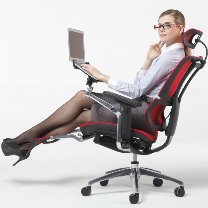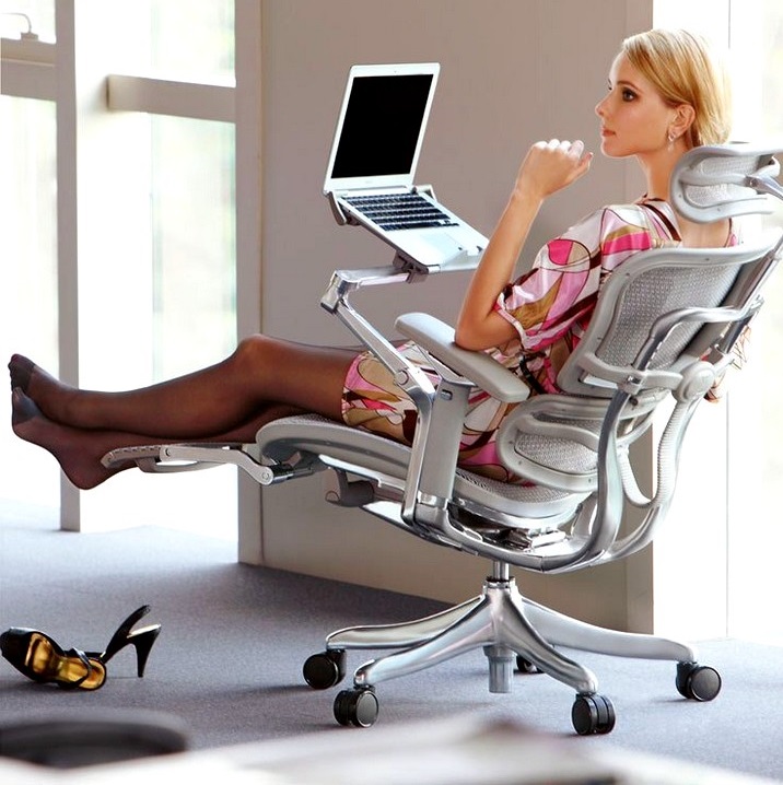 A table chair with a footrest is a popular model that allows you to work behind a laptop in a comfortable position. The ability to adjust the backrest helps to position the spine correctly and relax the muscles of the legs and back. This provides complete rest and a positive effect on blood circulation.
