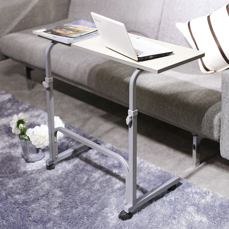 The bedside model for a laptop is usually C or L shaped. It can be made on a bracket with a swiveling mechanism for mounting the table top, where the height and angle of inclination are adjustable, and it can be monolithic. The product allows you to work at the computer without getting out of bed and can be used for eating food in front of the TV.