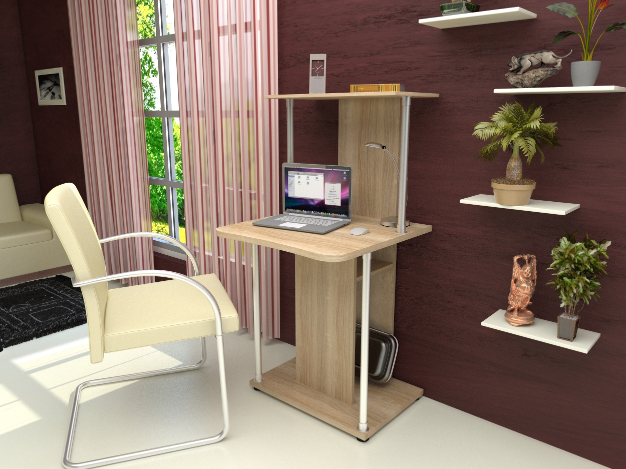 A stationary laptop table is a smaller version of a traditional computer desk. The product is supplied with boxes and superstructures, there is a hole for the release of wires. Available in the corner and wall version. Corner products can be diagonal and perpendicular to the placement of the laptop, they are ergonomic and multifunctional. Due to the small size of the length and width of additional equipment is located vertically.